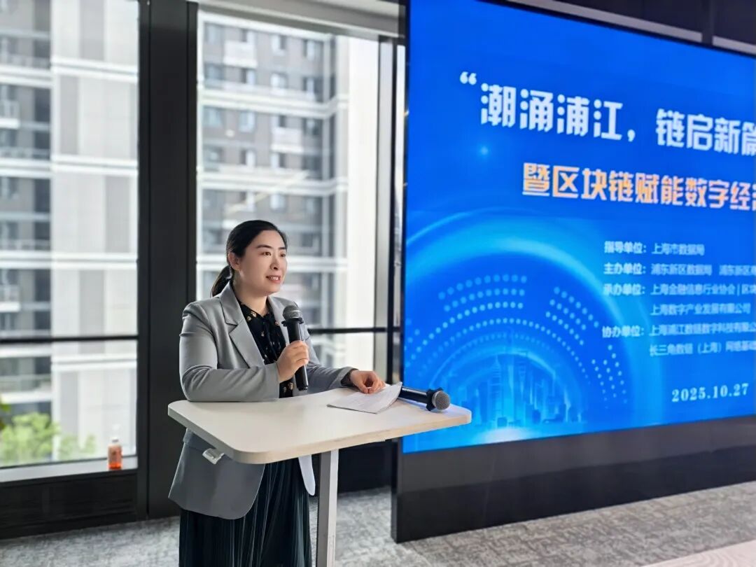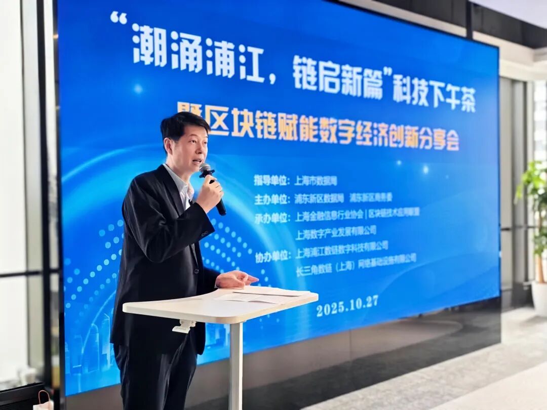 10 月 27 日下午,“潮涌浦江,链启新篇” 科技下午茶暨区块链赋能数字经济创新分享会在浦东新区张江模力社区顺利召开。本次活动由上海市数据局指导,浦东新区数据局联合浦东新区商务委主办,上海金融信息行业协会、区块链技术应用联盟、上海数字产业发展有限公司承办,浦江数链与长三角数链协办,吸引超百名政企代表参会,搭建起跨领域协同交流平台。