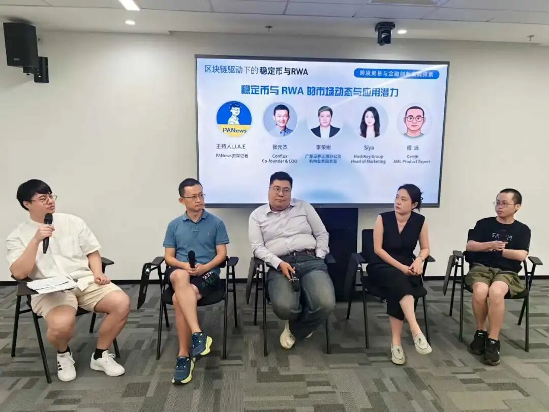 第二场圆桌对话聚焦在“稳定币与RWA的市场动态与应用潜力”的议题上,由PANews资深记者Jae主持,Conflux联合创始人兼COO张元杰、广发证券上海分公司机构业务副总监李荣彬、HashKey Group市场负责人Siya、CertiK 反洗钱产品专家程远等嘉宾参与讨论。